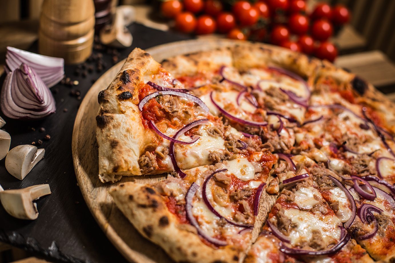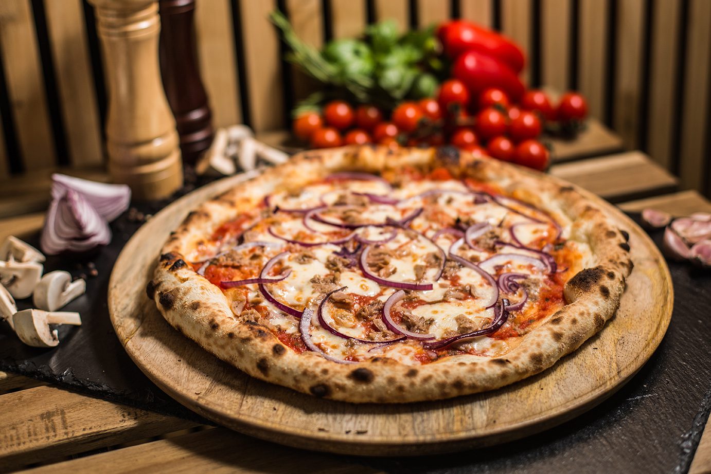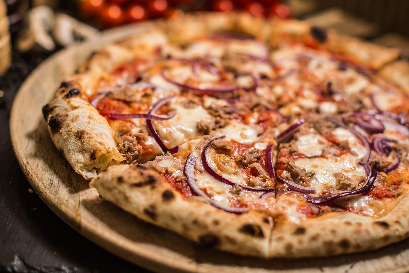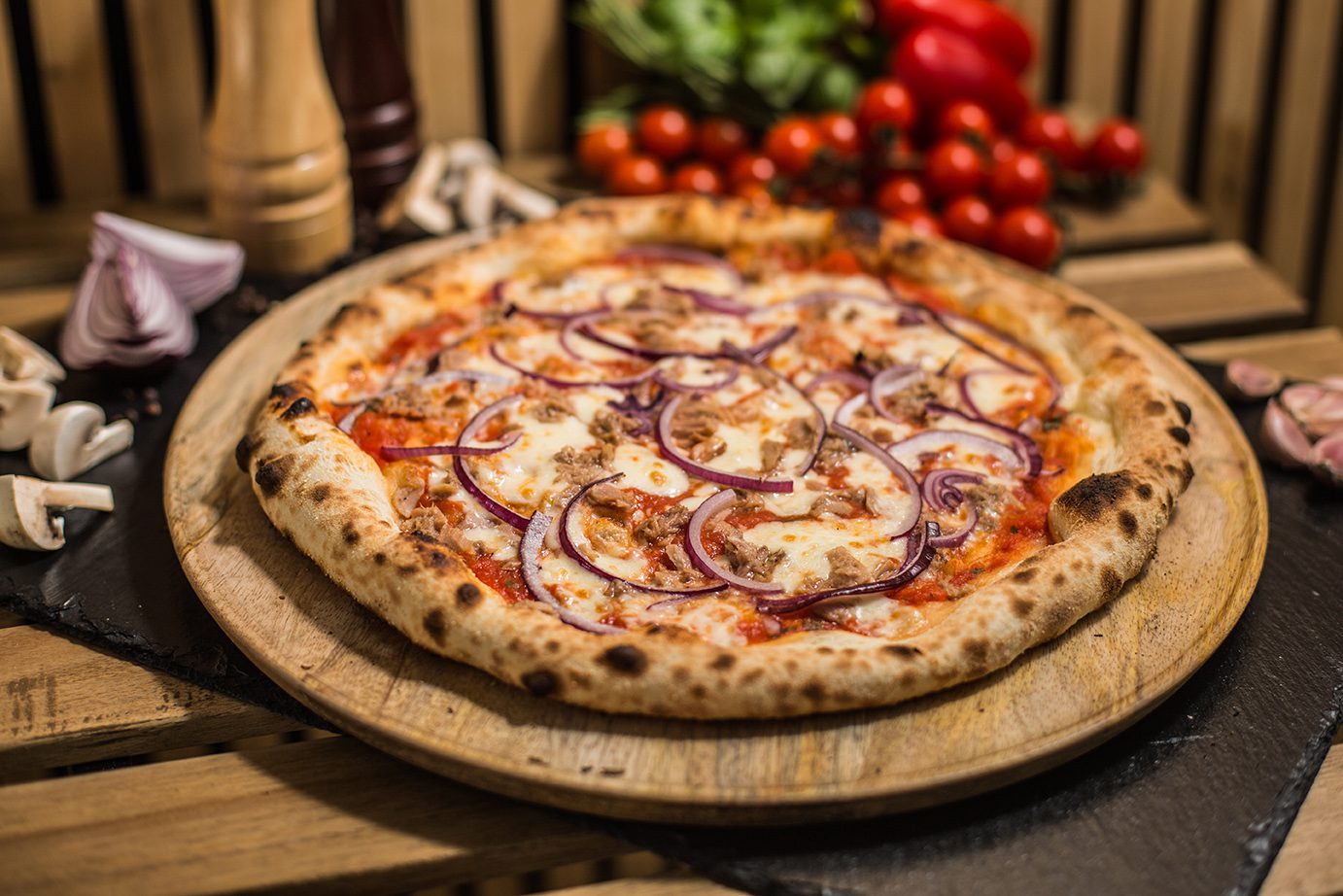 Strona głównaPizza6. Tonno 6. Tonno 39.00zł Sos pomidorowy, Mozarella, Tuńczyk, Czerwona cebula Dodatkowy ser Ser Mozarella + 5.00złSer kozi + 5.00złGorgonzola + 5.00złGrana padano + 5.00złMozarella di Bufala + 5.00zł Dodatkowe mięso Salami picante + 6.00złSzynka cotto + 6.00złSzynka parmeńska + 6.00złKurczak + 6.00złSalami z koprem włoskim + 6.00złTuńczyk + 6.00złWędzony łosoś + 6.00zł Dodatkowe warzywa Pieczarki + 4.00złOliwki czarne + 4.00złKarczochy + 4.00złCzerwona cebula + 4.00złPomidorki cherry + 4.00złRucola + 4.00złPieczona papryka + 4.00złChutney z cebuli + 4.00złSuszone pomidory + 4.00złPieczone ziemniaki + 4.00złBorowiki + 4.00złSzpinak + 4.00złCzosnek + 4.00zł ilość 6. Tonno Zamów Kategoria: Pizza Product ID: 29213 Opis Opis Sos pomidorowy, Mozarella, Tuńczyk, Czerwona cebula Podobne produkty 10. Tarantella 42.00zł Zamów 1. Margherita 32.00zł Zamów 3. Peperoni 36.00zł Zamów